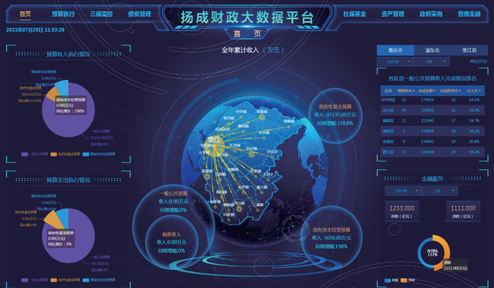 平臺釆用海量數據存儲,大數據挖掘與可視化技術,實現預算執行、社保基金、債務管理、資產管理、政府釆購、投資評審、普惠金融等7大板塊業務數據的采集、分析與應用。目前在全國已擁有10余個典型案例。